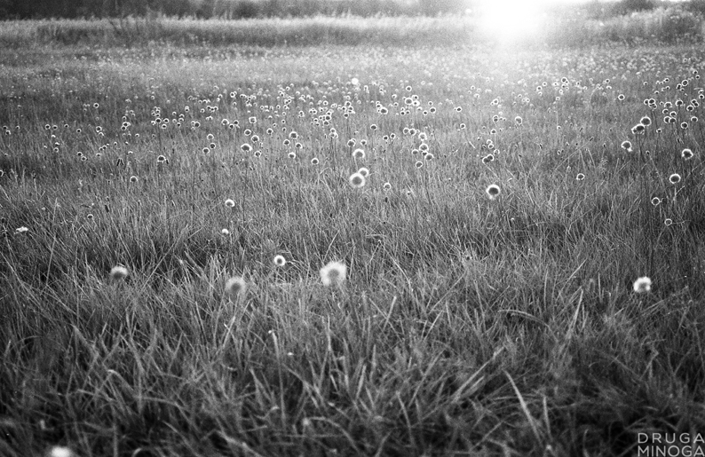 Wskutek obiektywnych okoliczności życiowych, zresztą sympatycznych, tegoroczny sierpień nie był szczególnie podróżniczy. W cyklu pozawarszawskim na koniec miesiąca sięgam więc do dawniejszych zasobów, wśród których jest na przykład sierpień 2008, dwuosobowy spływ Narewką i Narwią od Kosego Mostu do Rzędzian. To było przyjemne: pustka, łąki, wschody i zachody, przelatujące żurawie, rzeka, kąpiele na golca, ciepłe dnie, chłodne wieczory, komary. Fotograficznych wspomnień jest kilka, skleconych sposobem troglodyckim, analogowym i czarno-białym.